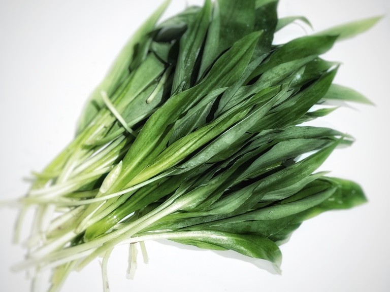 Den Spinat waschen und verlesen (die Stiele entfernen) und auf ein gelochtes Garblech legen. Den Bärlauch ebenso waschen, die Stiele entfernen und zum Babyspinat auf das Lochblech geben. Beides im Dampfgarer bei 100° Celsius für 2 Minuten blanchieren.
