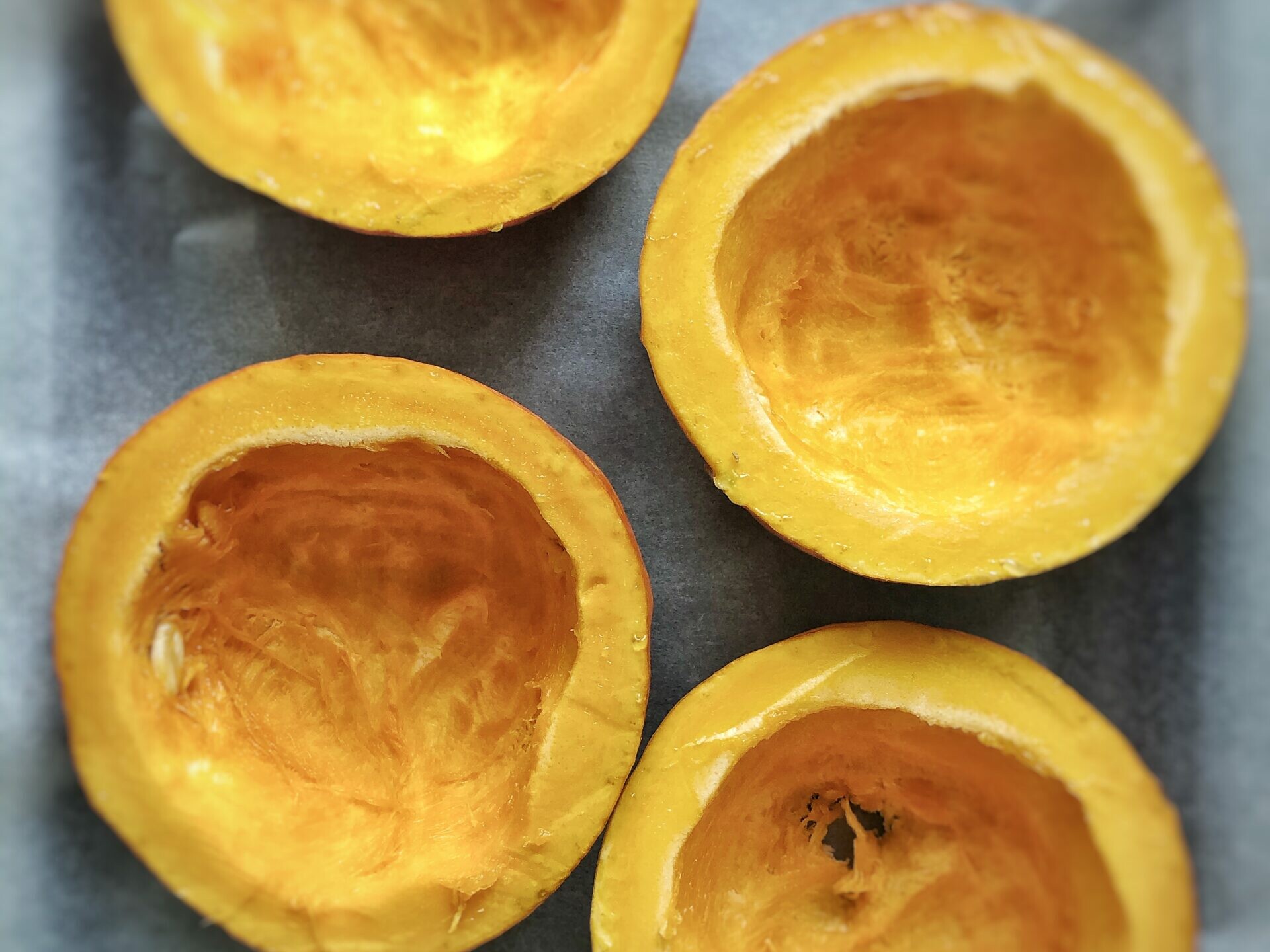 Im Kombidampfgarer mit der Einstellung Kombigaren Heißluft plus bei 200° Celsius und 10% Feuchte für ca. 40 bis 50 Minuten (je nach Größe des Kürbisses) weich schmoren und karamellisieren lassen.